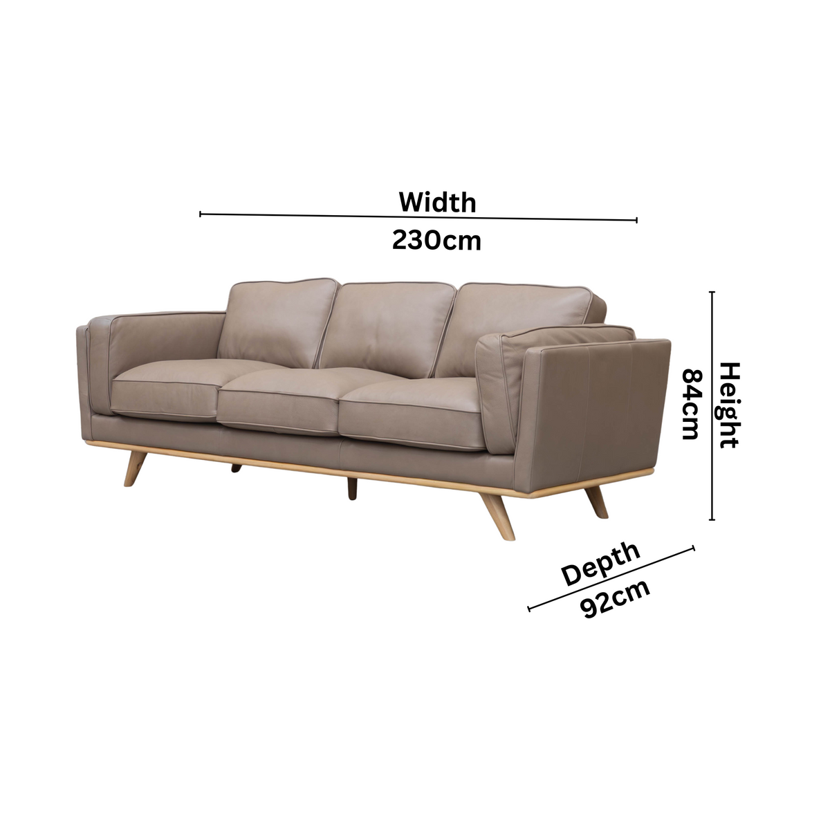 The Alpine Three Seat Leather Sofa features a timber plinth base for stability and durability, a distressed look leather upholstery for a vintage touch, and a scandi-inspired design for a modern aesthetic. Enjoy the perfect combination of style and functionality with this expertly crafted sofa.