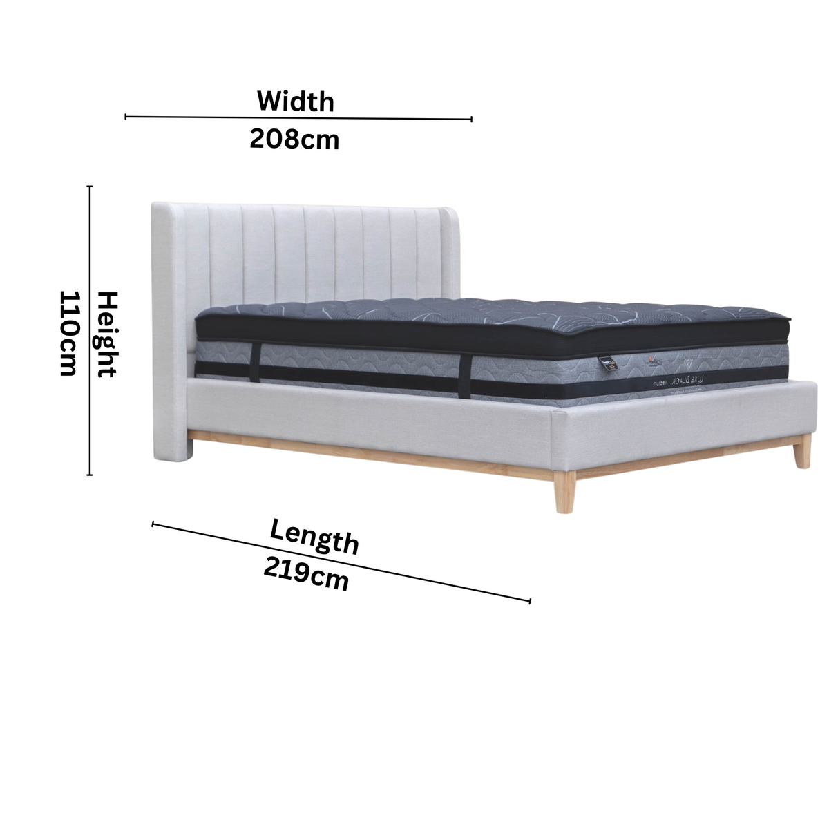 The Paros King Upholstered Bed features a sophisticated channel-stitched headboard that adds a stylish texture to your bedroom. Its sturdy timber plinth base provides reliable support, while the solid timber slats ensure durability and optimal mattress ventilation. Designed with quality materials and expert craftsmanship, this bed combines aesthetic appeal with lasting comfort.