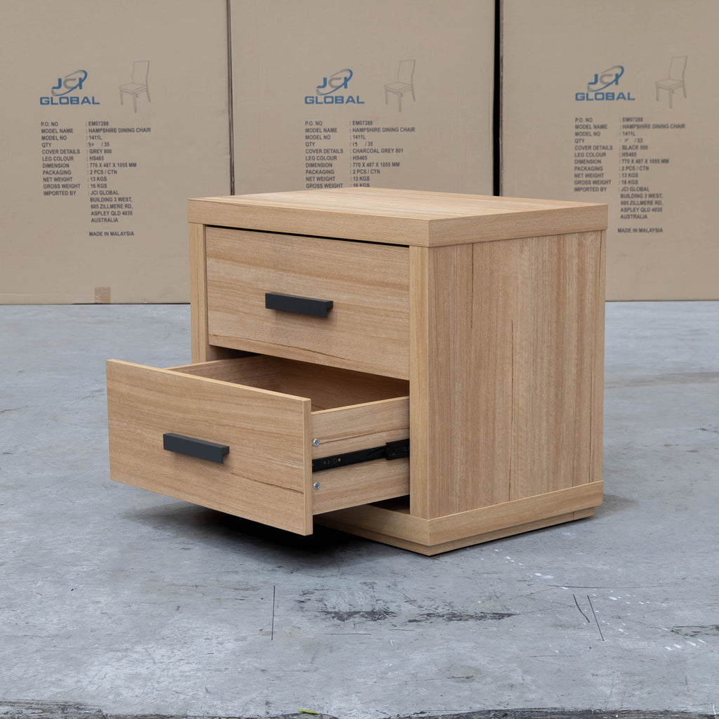 The Esca Two Drawer Bedside combines practical storage with sleek design. Featuring two spacious drawers with durable metal handles, it offers reliable and easy-to-use storage for bedside essentials. Its sturdy construction ensures lasting performance, making it a functional and stylish addition to any bedroom.