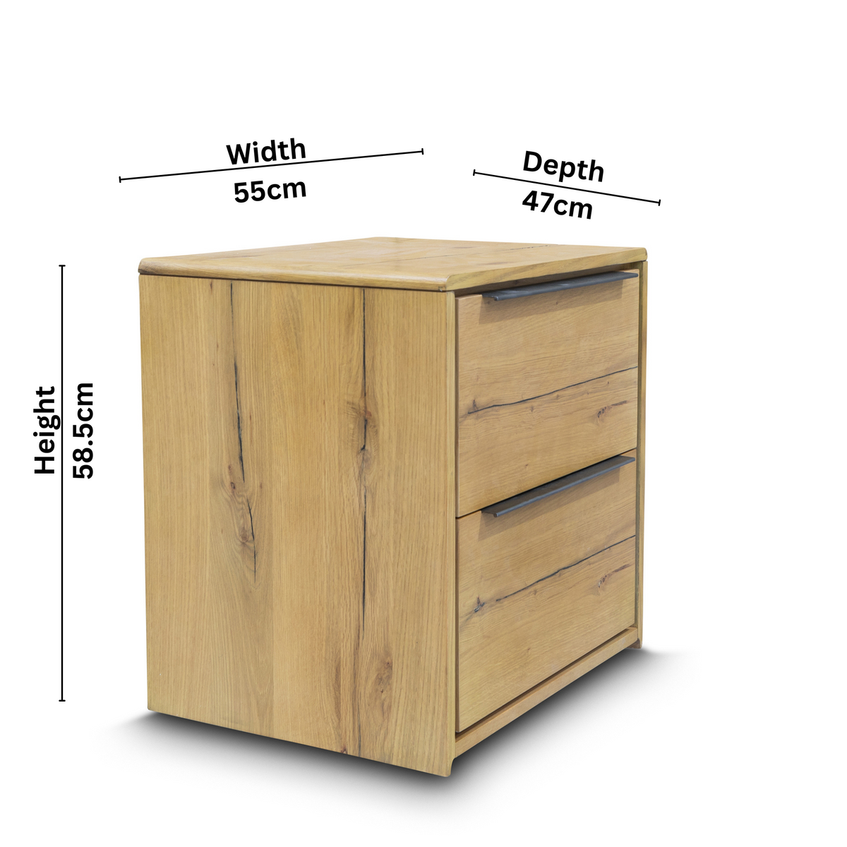 The Newfarm Distressed Oak Two Drawer Hardwood Bedside is perfect for adding stylish, modern storage to any bedroom. Featuring two drawers, it’s perfect for keeping any smaller items organized and out of sight.