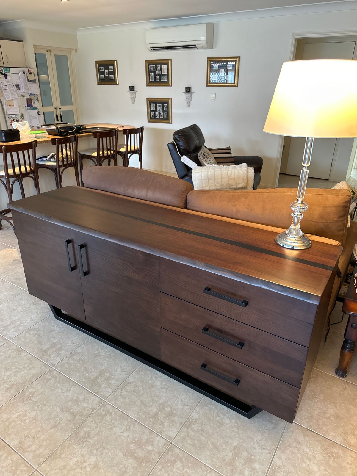 The Valencia Messmate hardwood buffet is a stylish and functional addition to any dining or living room. Featuring a warm walnut finish and a modern black resin insert, it's crafted to last and built with the finest materials.