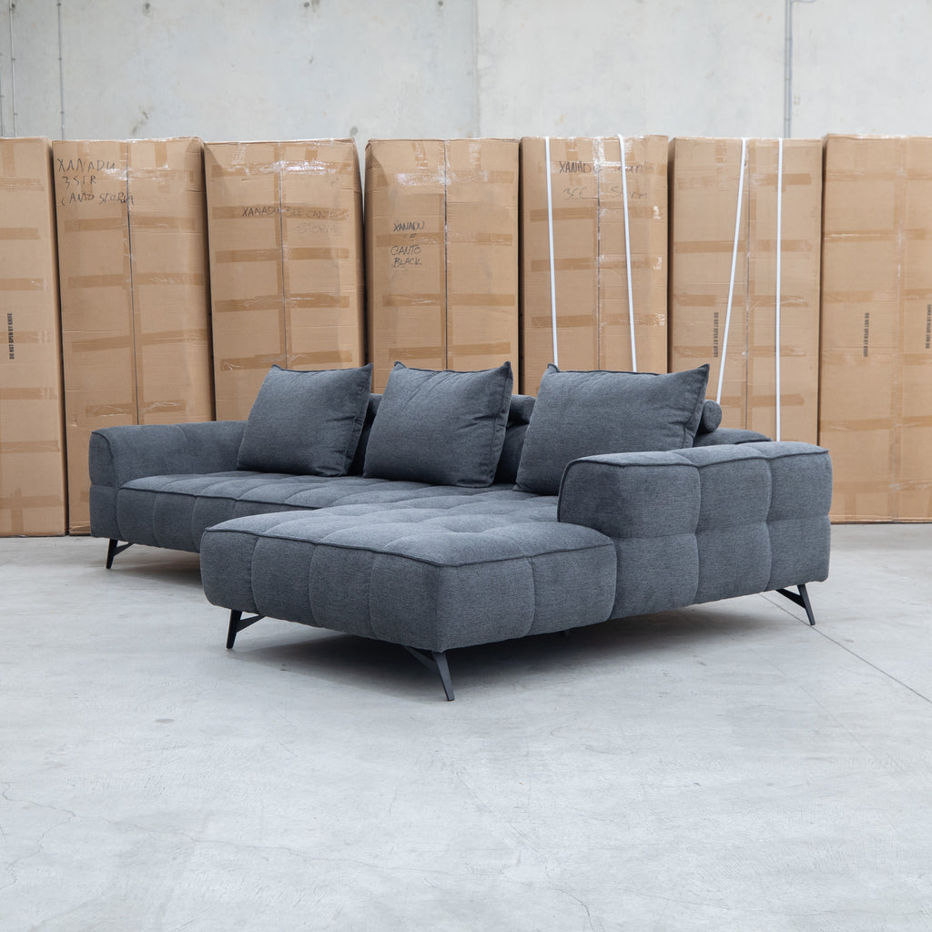 The Bliss RHF Chaise Lounge delivers sophisticated modern styling with practical versatility. Featuring independently adjustable backrests, this piece adapts to your preferred seating depth—from upright lounging to deep seated positions. The fabric upholstery provides a neutral, contemporary aesthetic that integrates seamlessly into curated interiors.