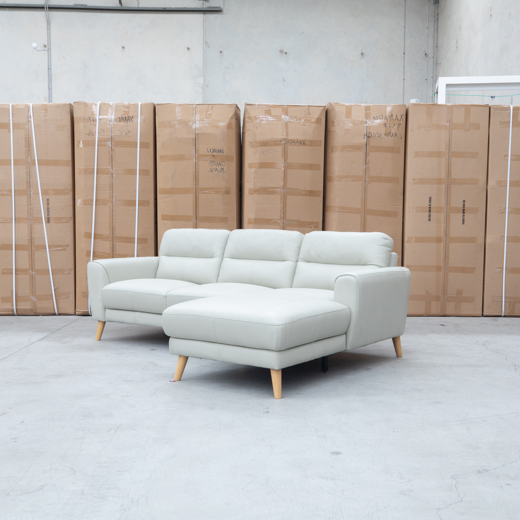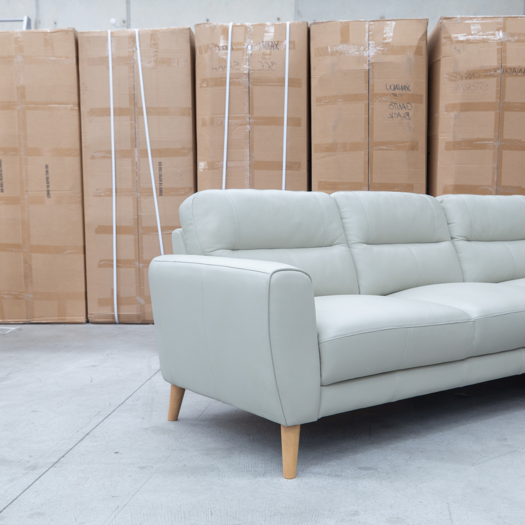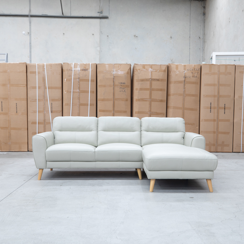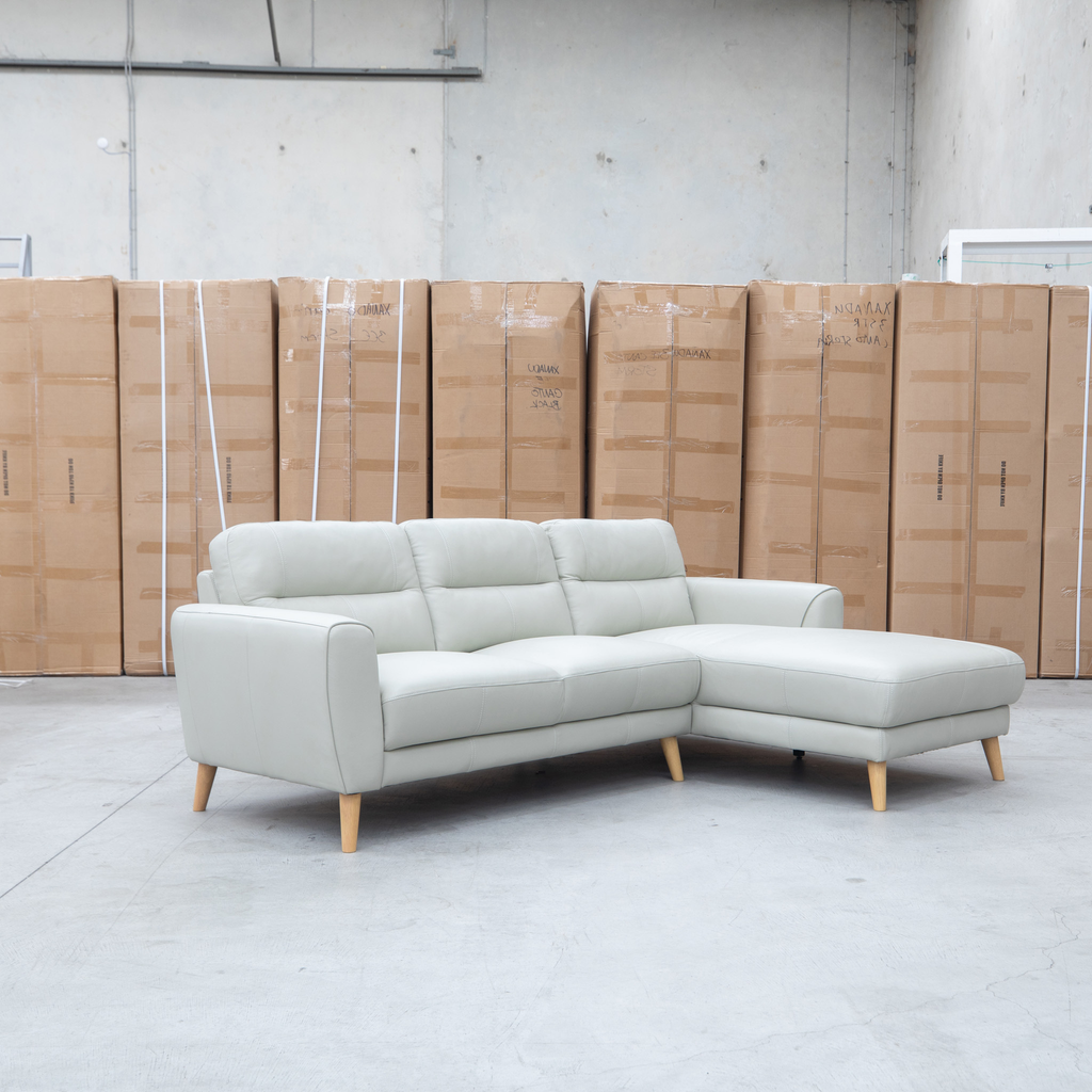 Nevada Three Seat RHF Leather Chaise Lounge - Light Grey