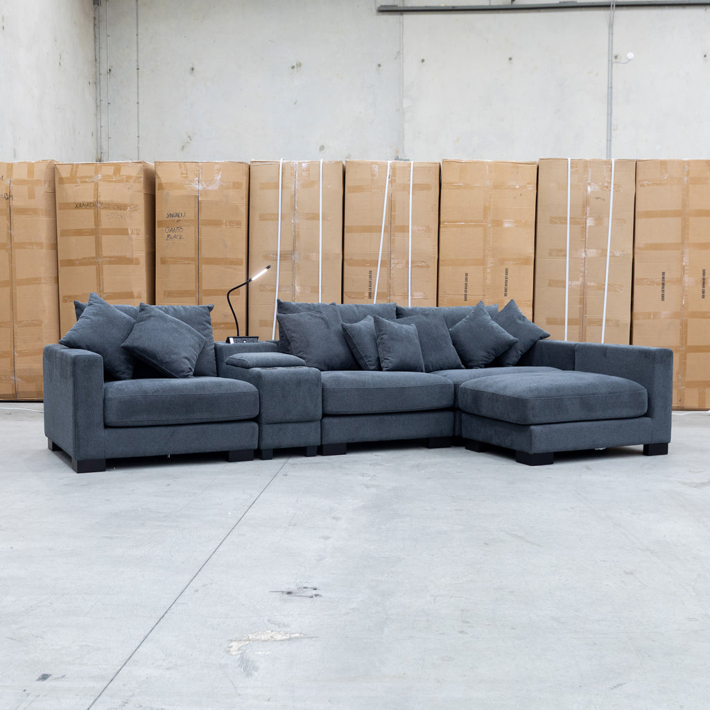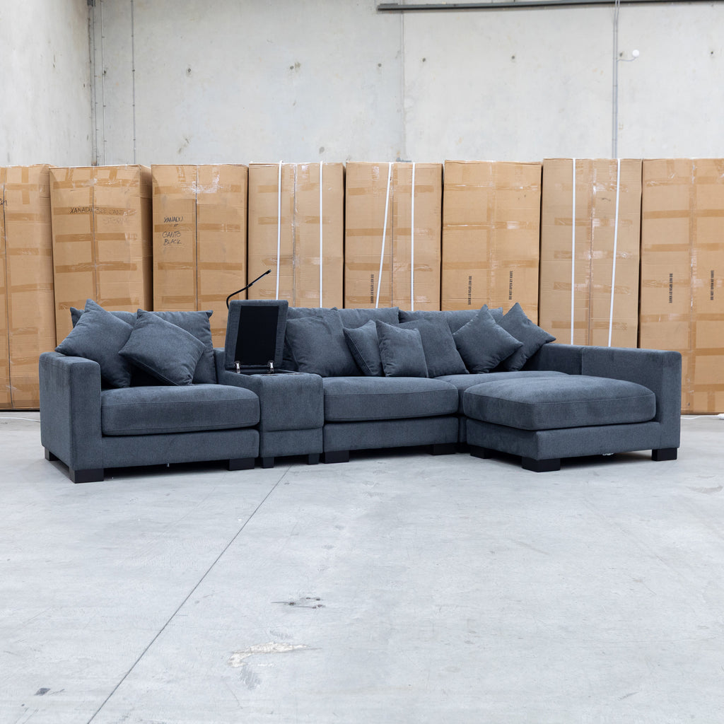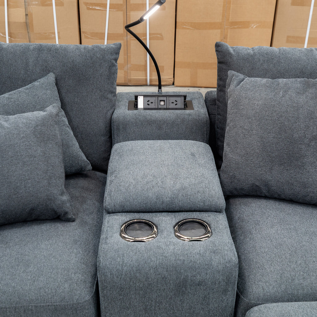The Paige Reversible Chaise Lounge combines expert design with practical comfort. Upholstered in soft fabric, it provides a cozy seating surface. Its reversible chaise allows flexible placement to adapt to different room layouts. Integrated reading lights offer focused illumination for nighttime relaxation, while built-in cup holders add convenience for beverages. This lounge is tailored for those seeking both functionality and refined style in their living space.