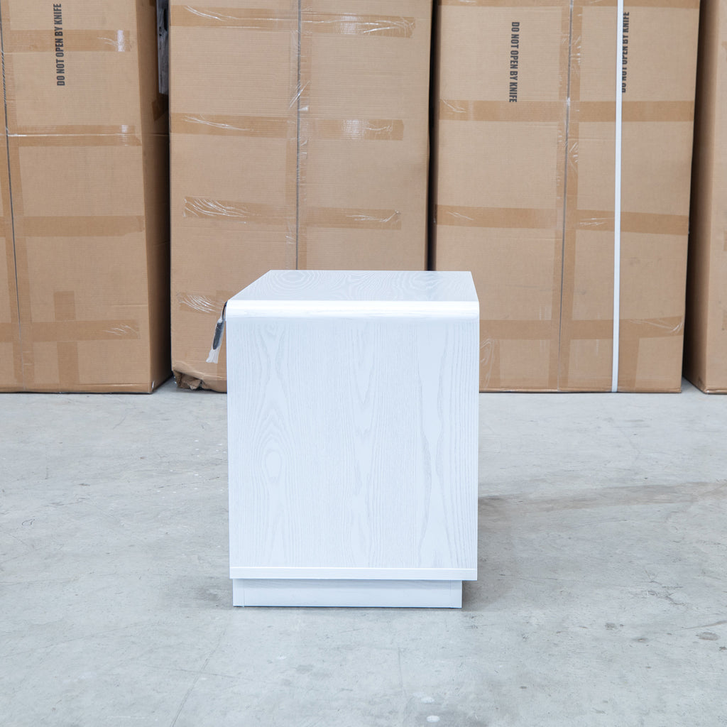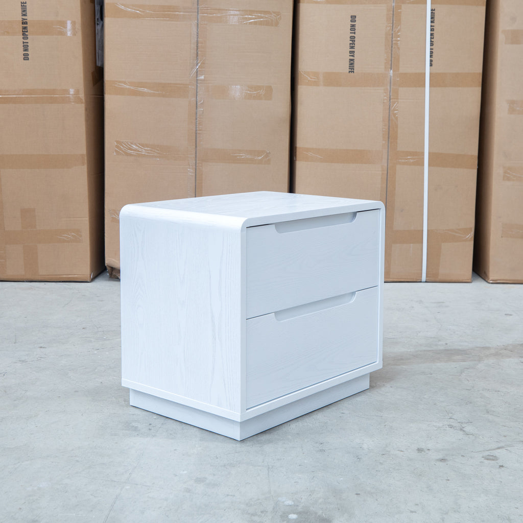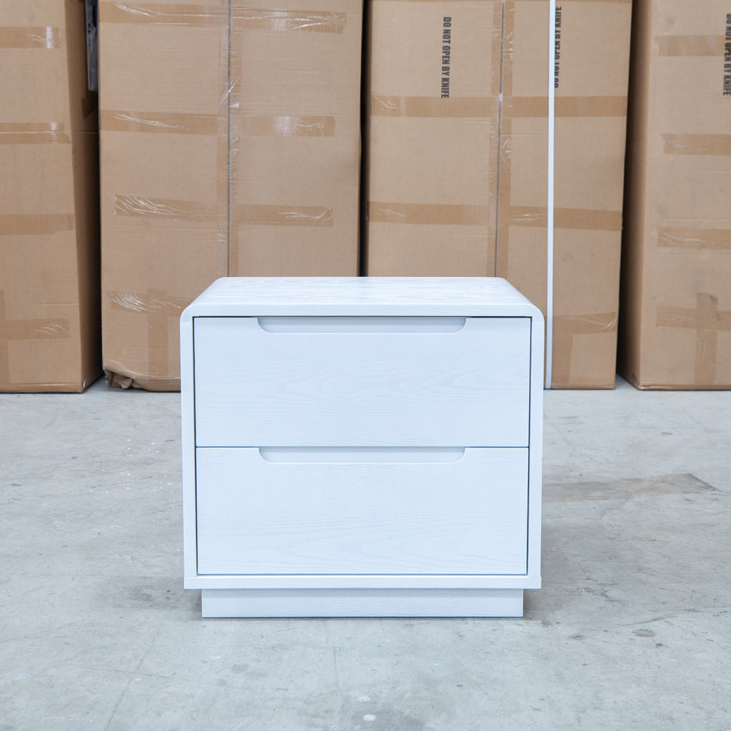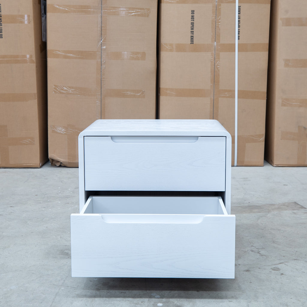 The Aston Two Drawer White Ash Bedside in classic white exemplifies understated sophistication and functional design. Its handleless construction creates seamless, uninterrupted lines that enhance the piece's minimalist aesthetic and facilitate effortless cleaning. Crafted from white ash timber and finished in a crisp white palette, this bedside table complements contemporary and transitional interiors with refined elegance.
