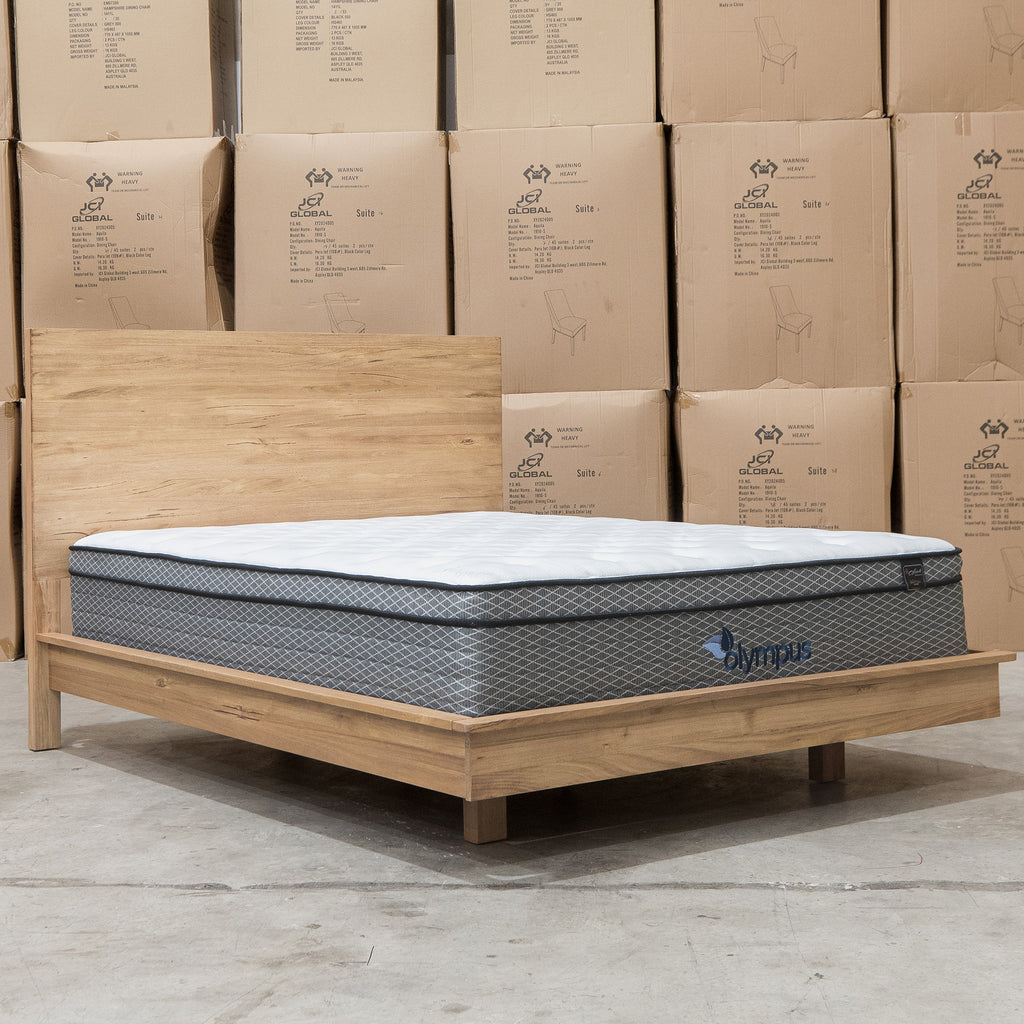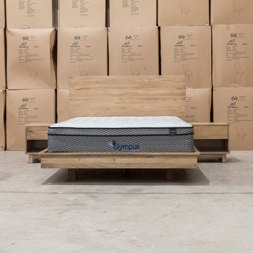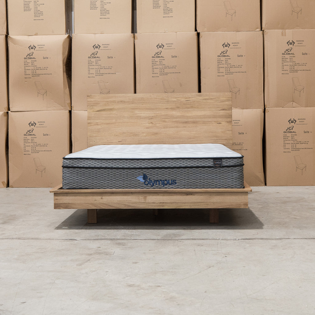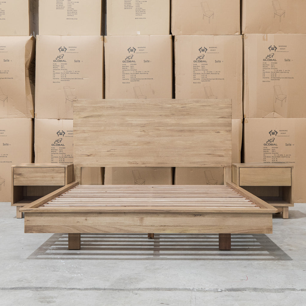 The Mandalay Floating Bedframe combines solid timber slats with a natural Mountain Ash finish, emphasizing both strength and the wood’s elegant grain. Its distinctive floating illusion design delivers a modern, minimalist aesthetic while ensuring durable support for a premium bedroom centerpiece.