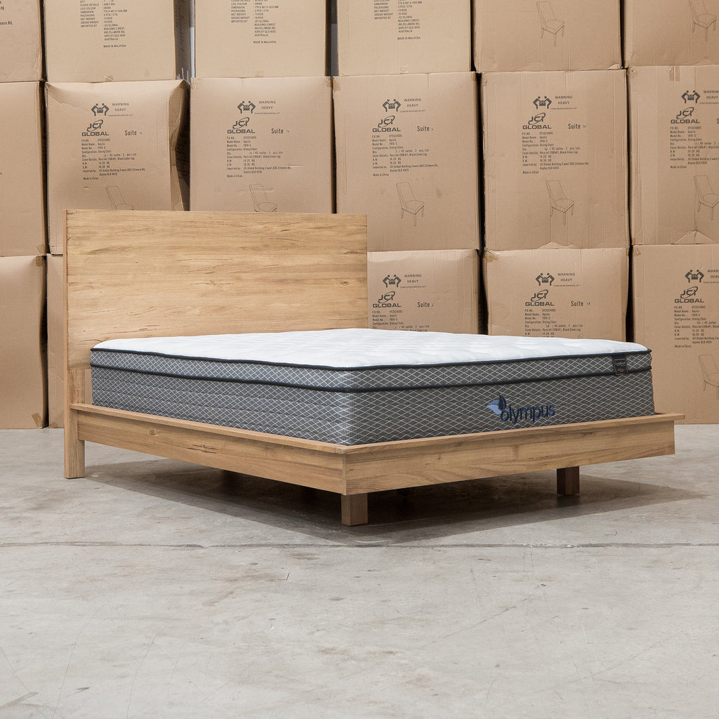The Mandalay Floating Bedframe combines solid timber slats with a natural Mountain Ash finish, emphasizing both strength and the wood’s elegant grain. Its distinctive floating illusion design delivers a modern, minimalist aesthetic while ensuring durable support for a premium bedroom centerpiece.