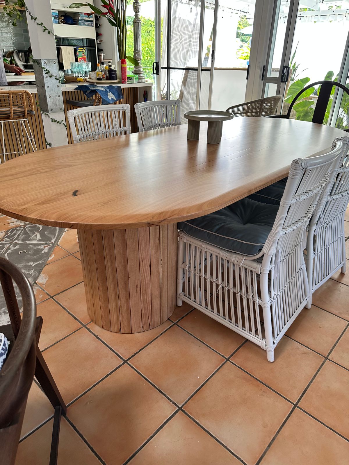 The Semillon 240cm New Zealand Ash Oval Dining Table is a contemporary take on traditional design. The finger join pedestal legs are strong and attractive, with a natural timber finish that ensures durability and beauty at the same time.