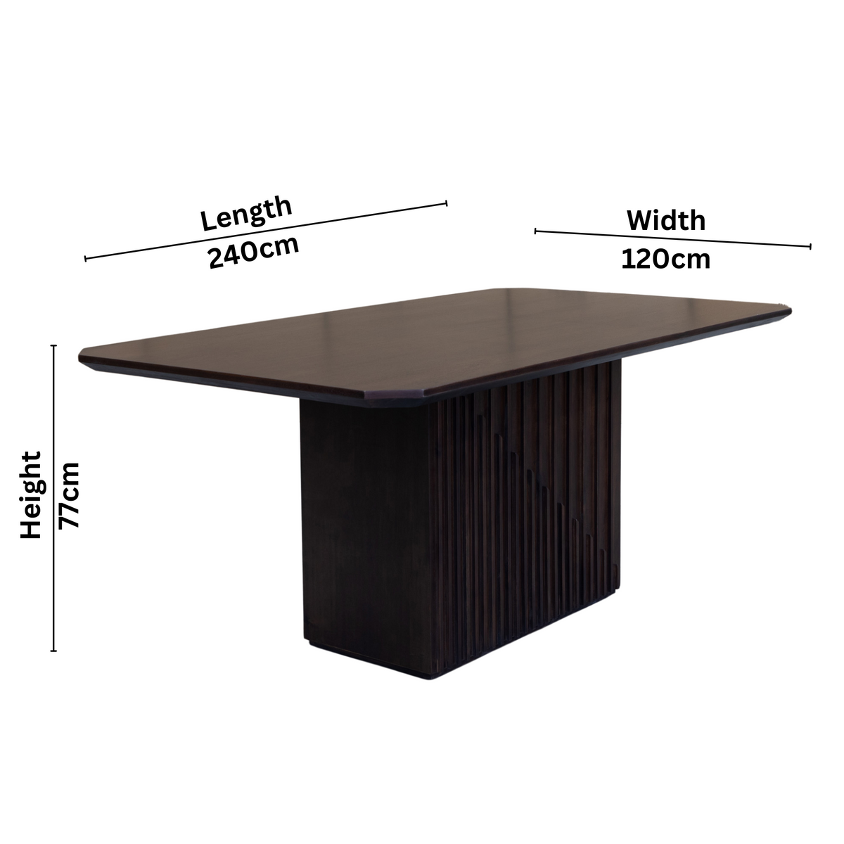 The Shiraz 240cm Acacia Hardwood Dining Table is a sophisticated and sturdy addition to any home. Crafted with feature pedestal legs and acacia hardwood construction, this dining table offers a stable and fashionable way to entertain.