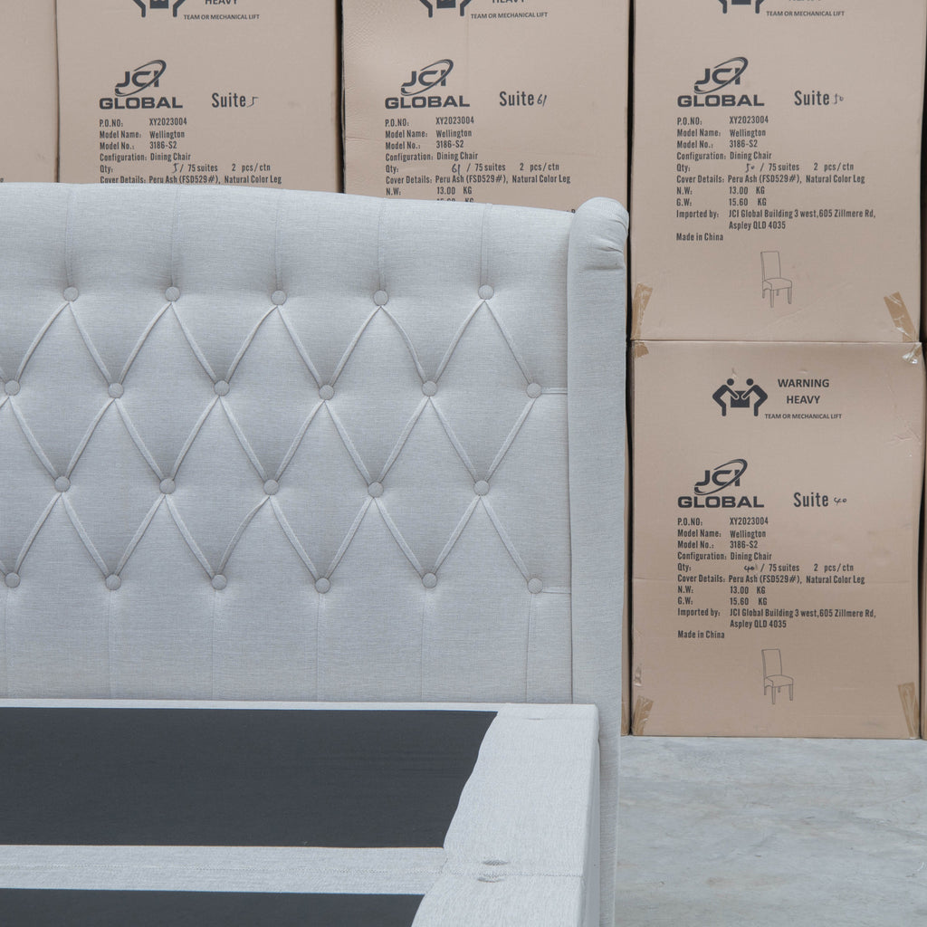 Sleek and stylish, the Amelia Fabric Gas Lift Bed is the perfect addition to any bedroom. Its wingback headboard adds a touch of elegance, while the gas lift storage compartment provides ample space for extra bedding or clothing. The button tufted headboard adds a classic touch to this modern bed.