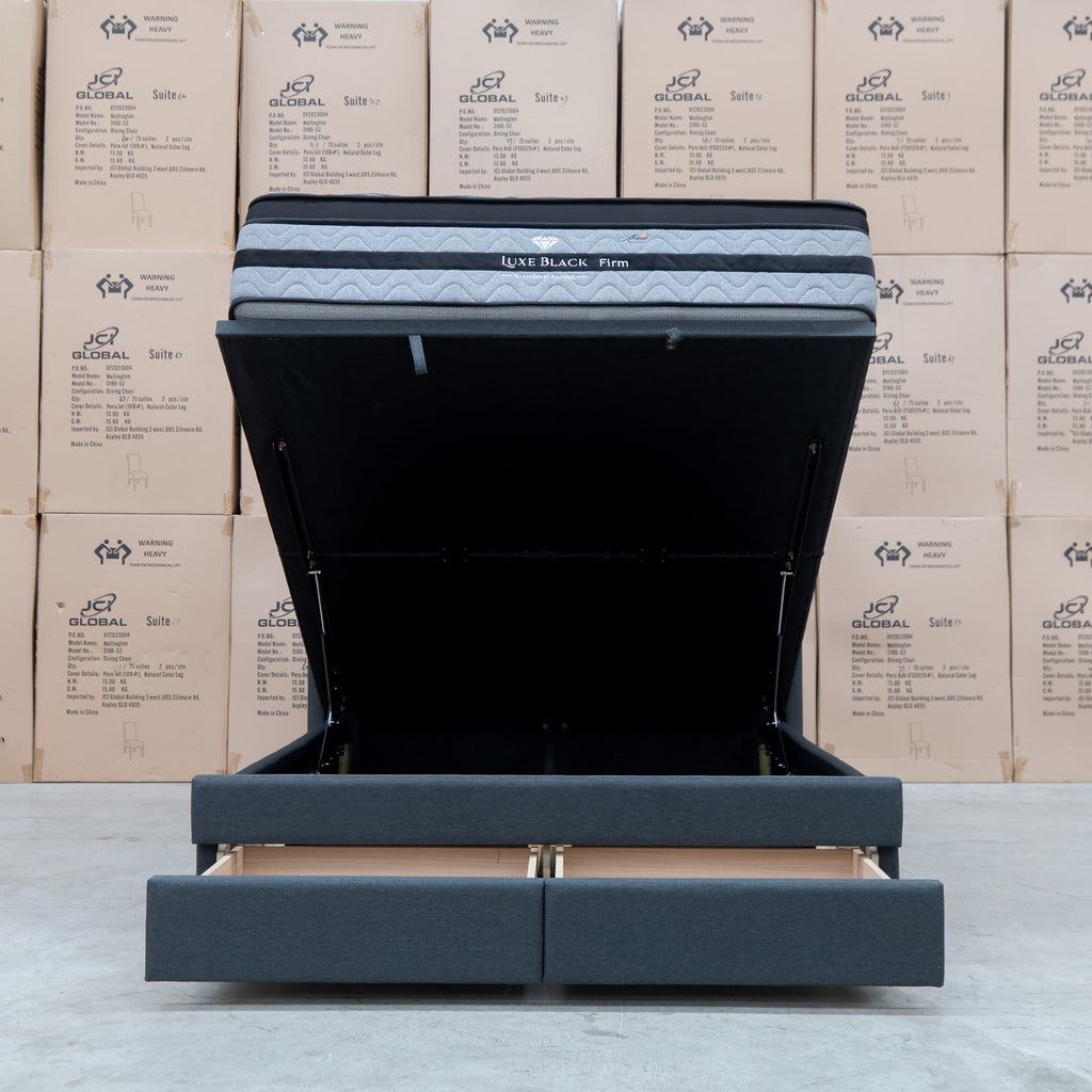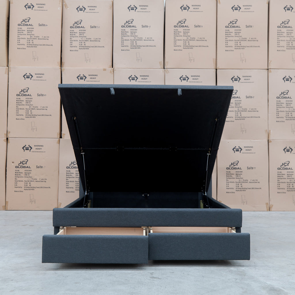 Chester Queen Fabric Gas Lift Storage Bed - Charcoal