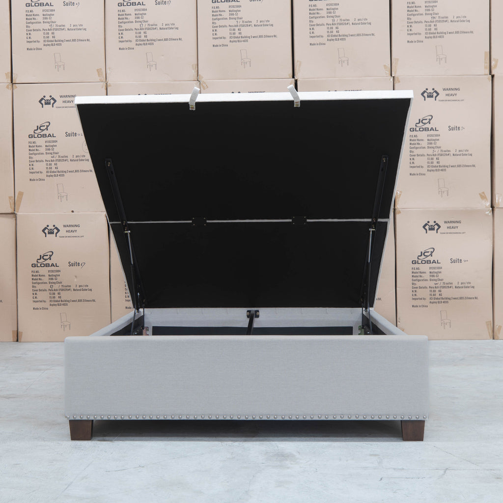 Elizabeth King Fabric Gas Lift Bed - Oat White