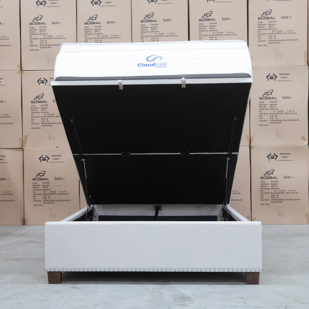 Expertly crafted, the Elizabeth Fabric Gas Lift Bed boasts a grand headboard and elegant button tufting. With the innovative gas lift storage, this bed offers both style and practicality, providing extra space for your belongings. Upgrade your bedroom with this luxurious and functional piece.