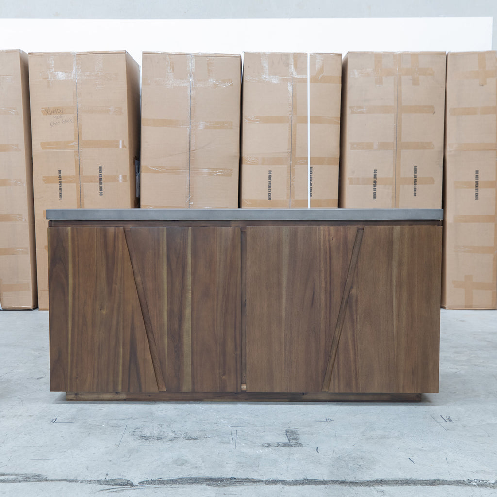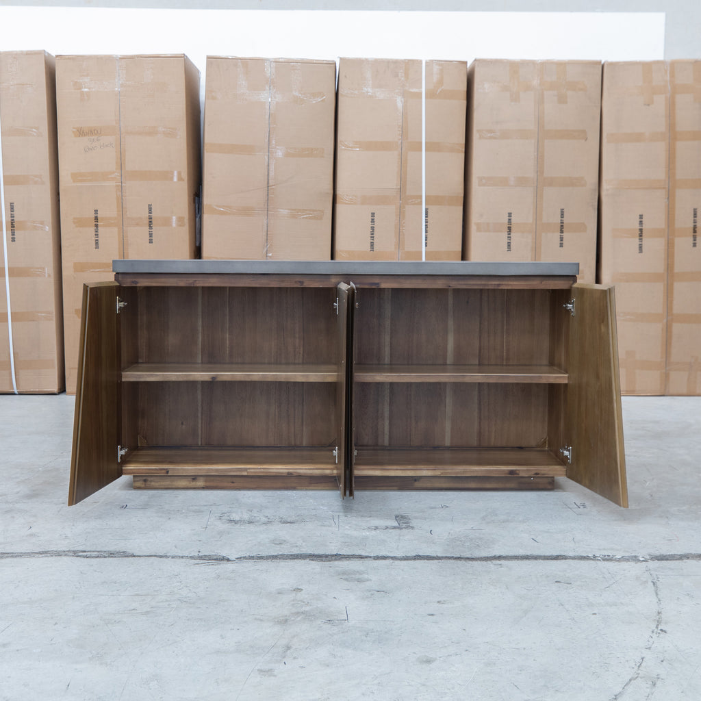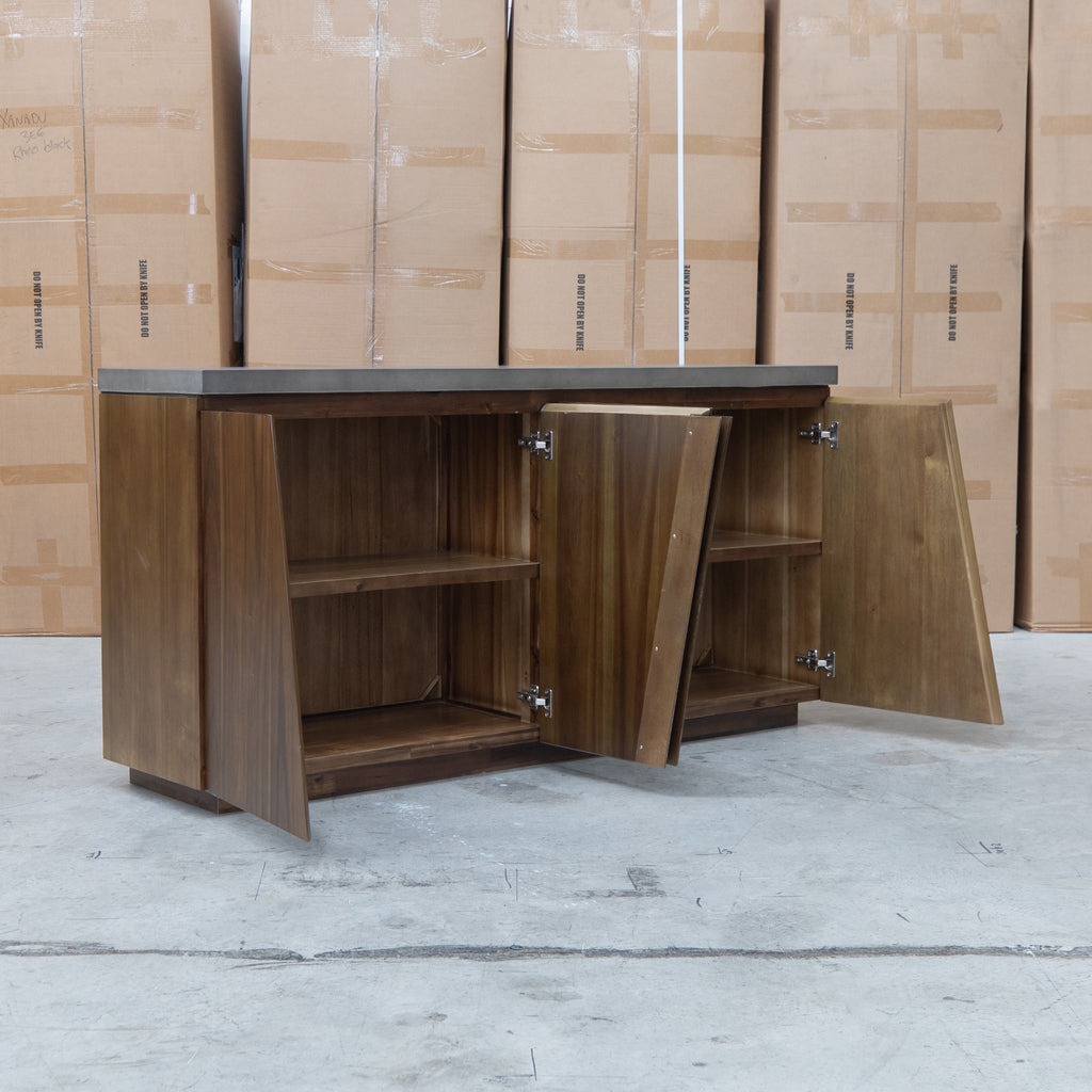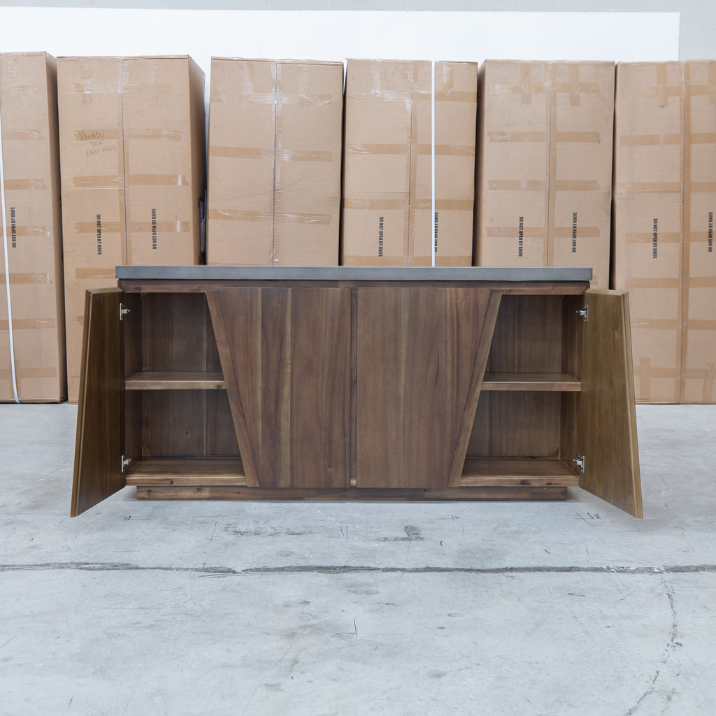 The Oatley Dark Concrete Buffet combines industrial sophistication with organic warmth. Its striking dark concrete surface delivers a contemporary aesthetic while the timber base grounds the piece with natural character. Distinctive angled doors add architectural interest and functional appeal, making this buffet a statement-making storage solution for modern interiors. Perfect for displaying tableware or concealing everyday items with style.
