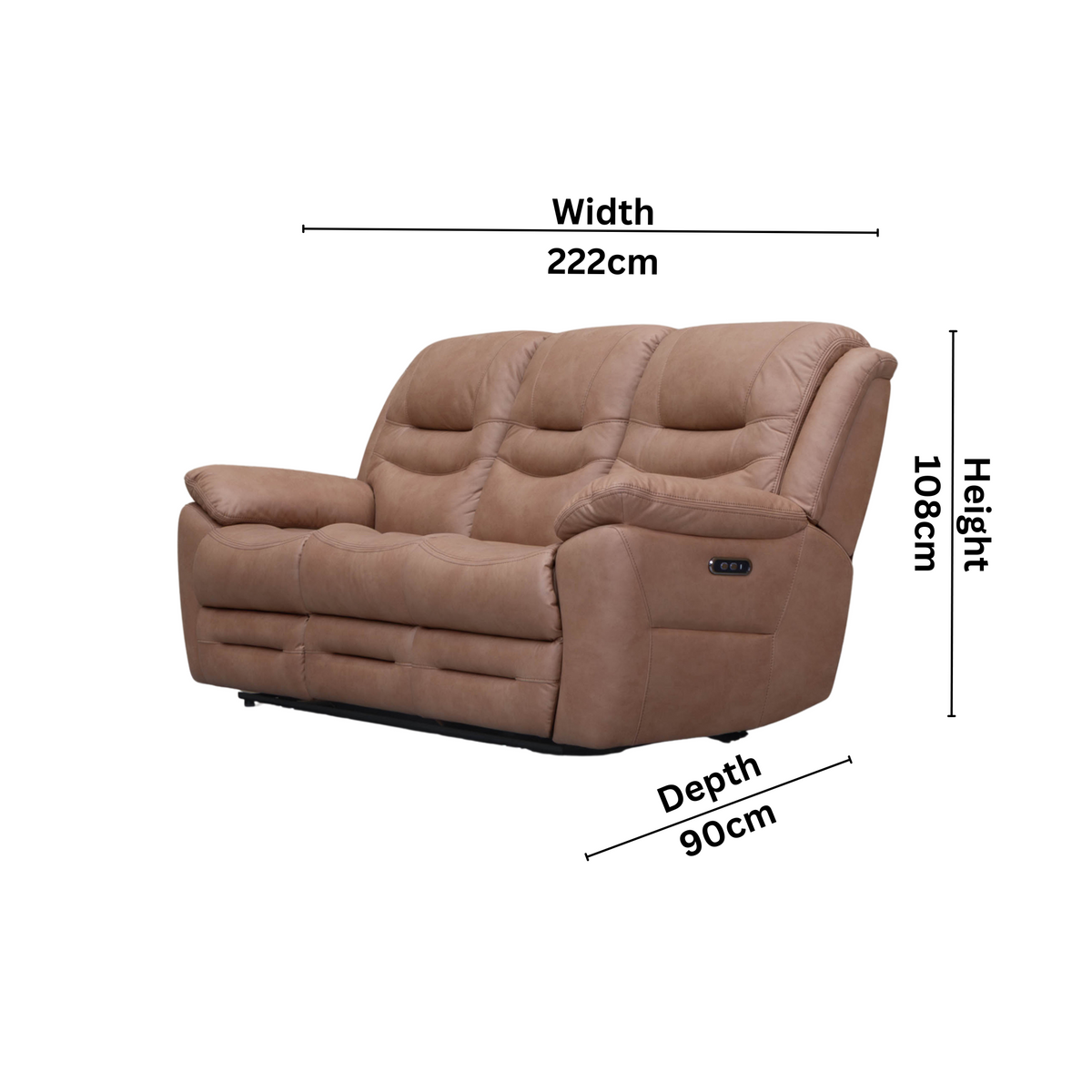 Airlie Three Seat Electric Recliner Lounge - Tan