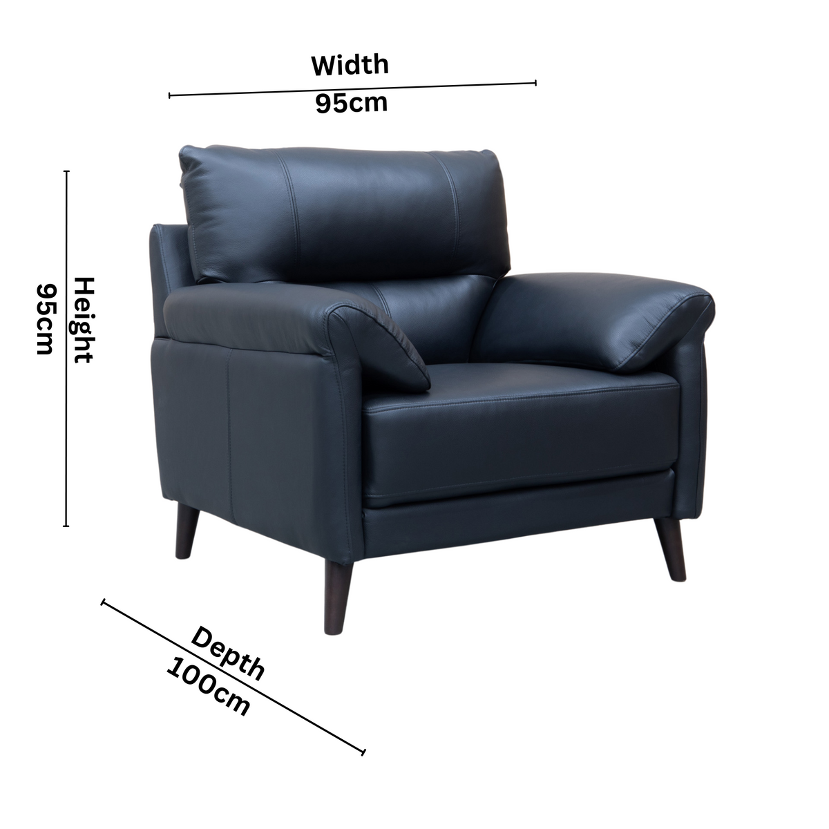 Elevate your living room with the Sabino Leather Single Armchair. Crafted with sleek leather upholstery, this sofa boasts a modern design that adds sophistication to any space. Experience the luxury and comfort of a quality leather sofa.