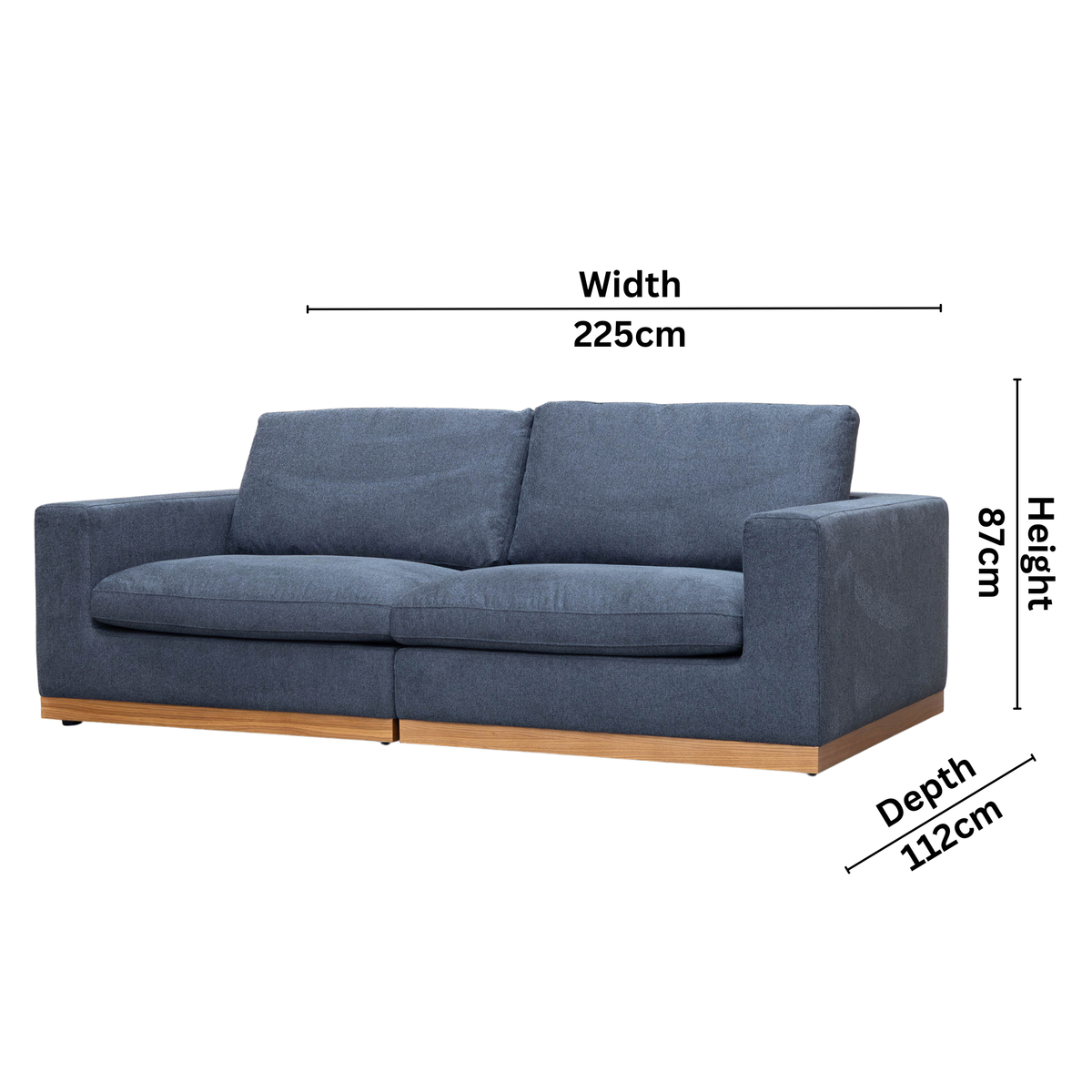 • Overall: 225cm W x 112cm D x 87cm H