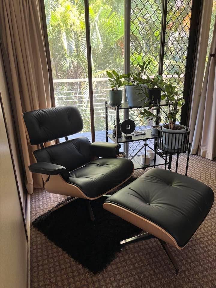 Eames Replica Leather Chair and Ottoman - Black Leather