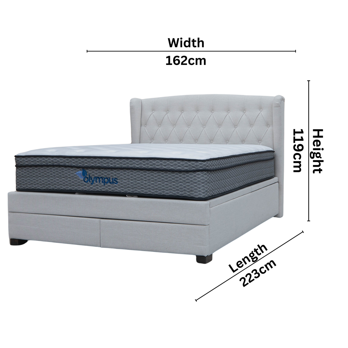Amelia Queen Fabric Gas Lift Storage Drawer Bed - Oat White - Available After 10th October