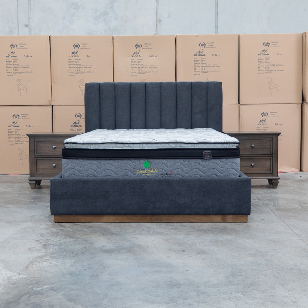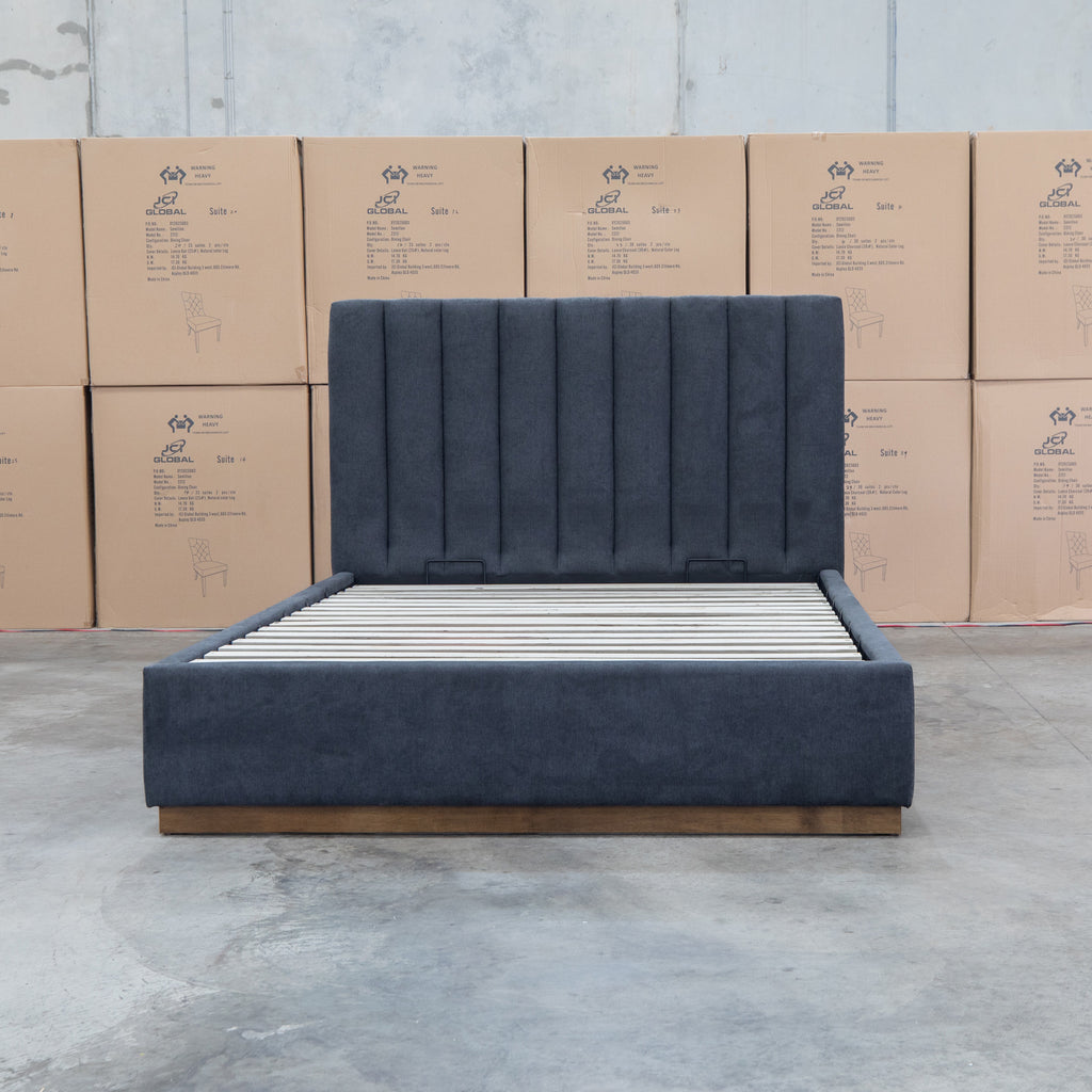 The Esperance Fabric Gas Lift Storage Bed merges contemporary aesthetics with intelligent storage solutions. Its channel stitched headboard delivers textural sophistication and visual interest, while the timber plinth base ensures structural integrity and timeless appeal. The gas lift mechanism provides effortless access to the generous under-bed storage compartment, eliminating the need for manual lifting and making organisation seamless.