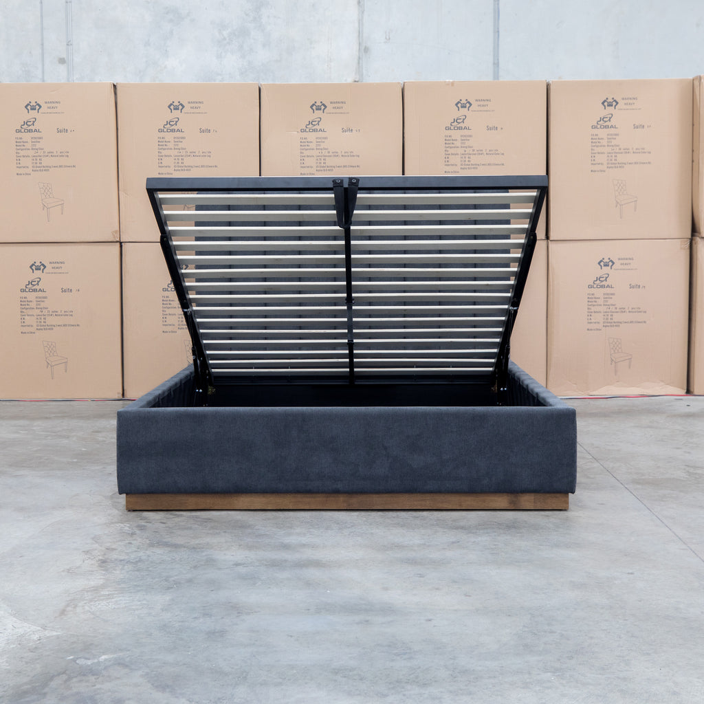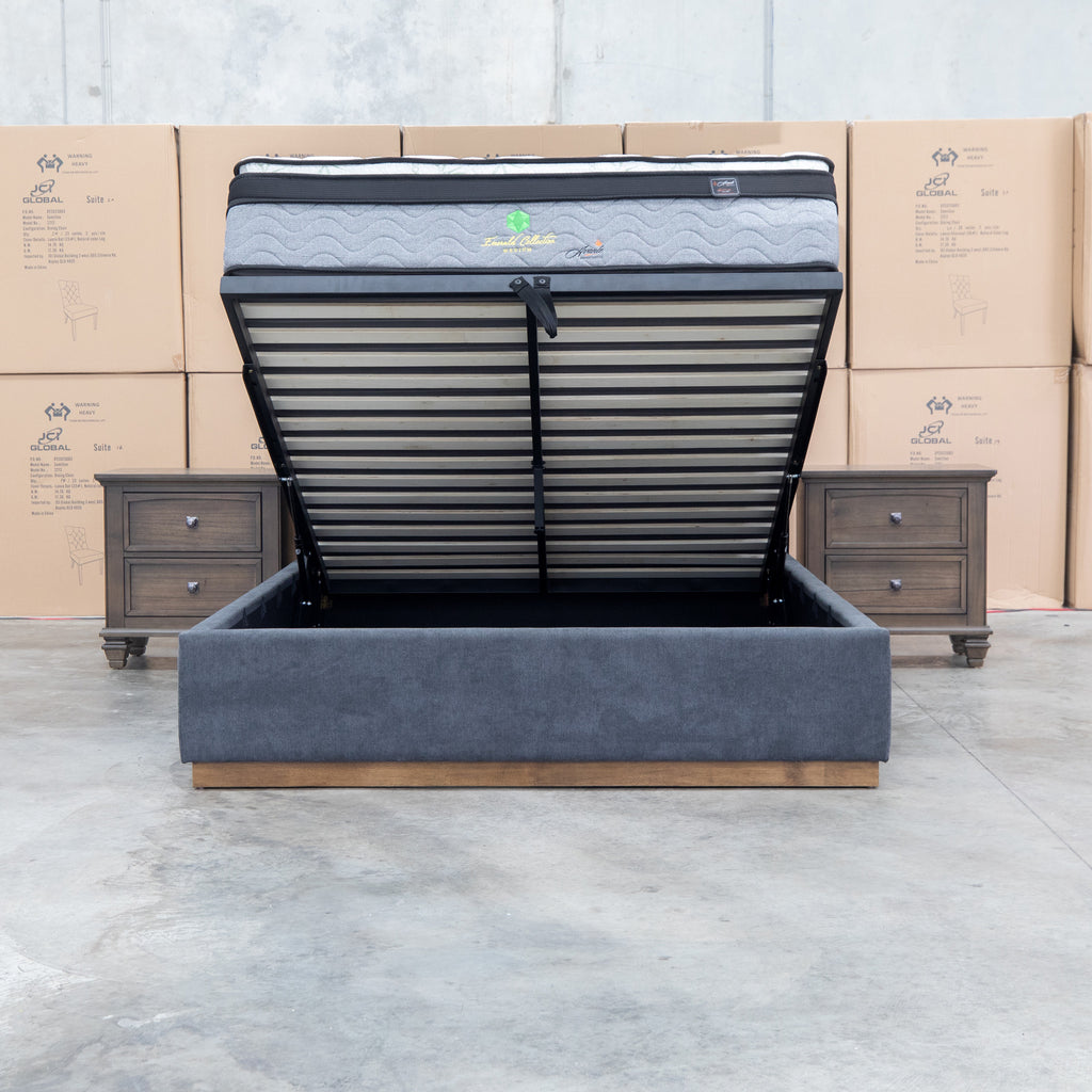 Esperance Queen Fabric Gas Lift Storage Bed - Charcoal