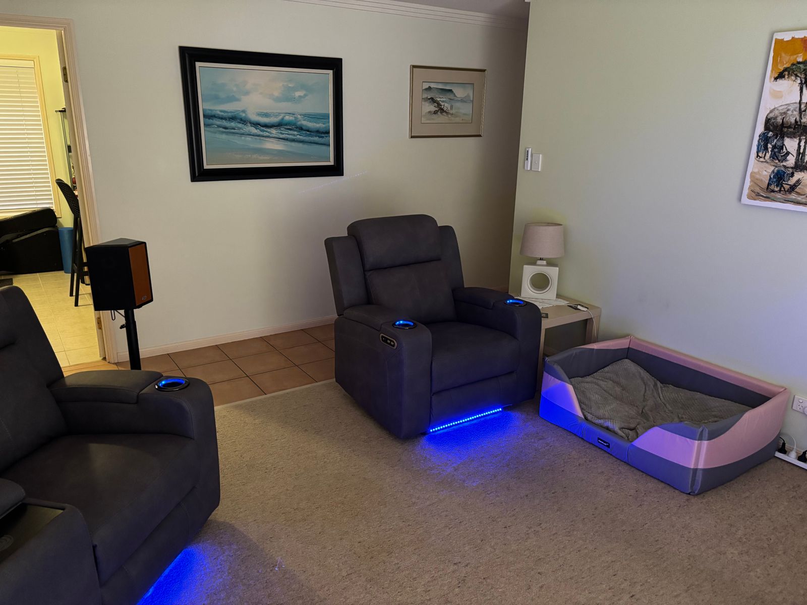 Upgrade your home movie watching experience with the Xanadu Dual Motor Electric Recliner Theatre. Enjoy full motion reclining, reversible cup holders, USB and USBC ports, a storage center console, wireless charging, 3 stage touch lights, and gaslift storage in the armrest. Relax and indulge in luxurious comfort while staying connected.