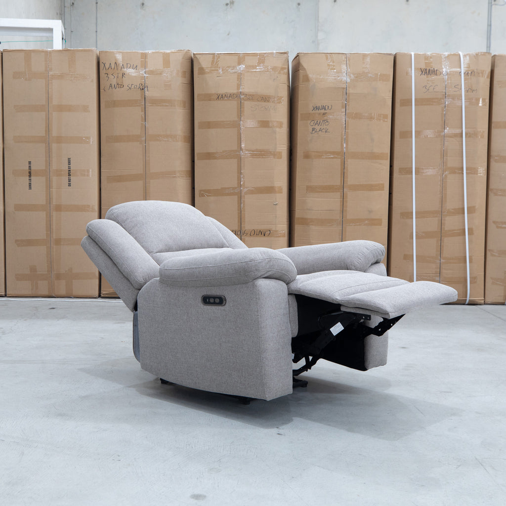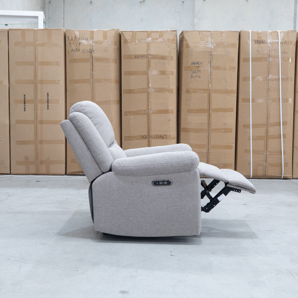 Embrace timeless comfort with this single electric recliner, featuring traditional design elements that complement any living space. Upholstered in quality fabric with a neutral bark finish, it combines classic aesthetics with modern convenience. The electric reclining mechanism offers effortless adjustment for optimal relaxation, while the sturdy construction ensures lasting durability. Perfect for those seeking a refined seating solution that doesn't compromise on functionality or style.