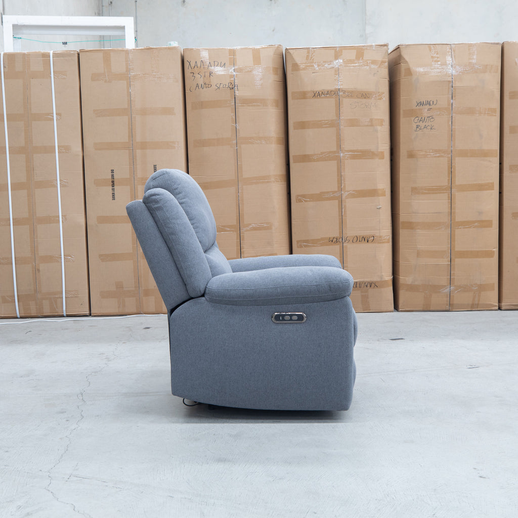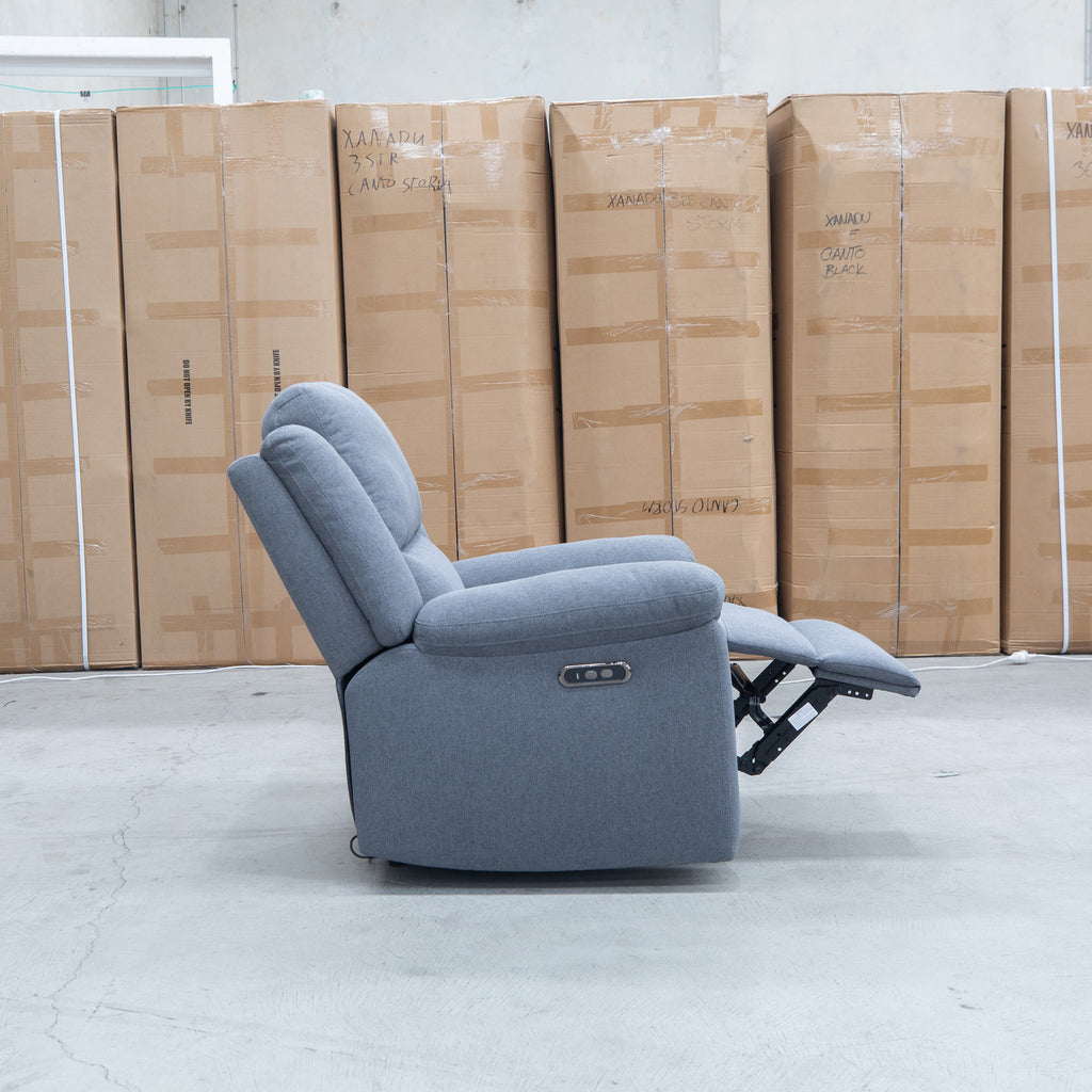 Embrace timeless comfort with this single electric recliner, featuring traditional design elements that complement any living space. Upholstered in quality fabric with a sophisticated slate finish, it combines classic aesthetics with modern convenience. The electric reclining mechanism offers effortless adjustment for optimal relaxation, while the sturdy construction ensures lasting durability. Perfect for those seeking a refined seating solution that doesn't compromise on functionality or style.