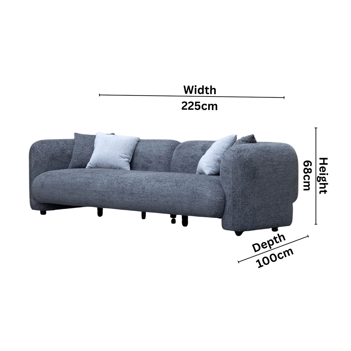 The Raven Curved Three Seat Sofa combines a modern curved design with soft fabric upholstery for exceptional comfort and style. Included scatter cushions enhance both support and aesthetic appeal, making this sofa a refined addition to contemporary living spaces. Its sleek curves provide ergonomic seating while elevating the room’s overall ambiance.