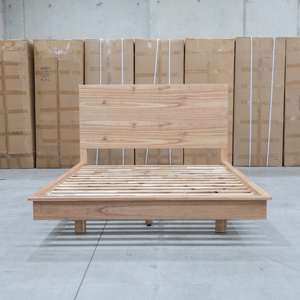The Mandalay Floating Bedframe combines solid timber slats with a natural Mountain Ash finish, emphasizing both strength and the wood’s elegant grain. Its distinctive floating illusion design delivers a modern, minimalist aesthetic while ensuring durable support for a premium bedroom centerpiece.