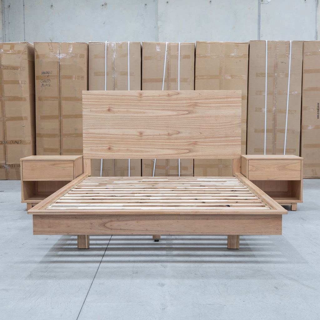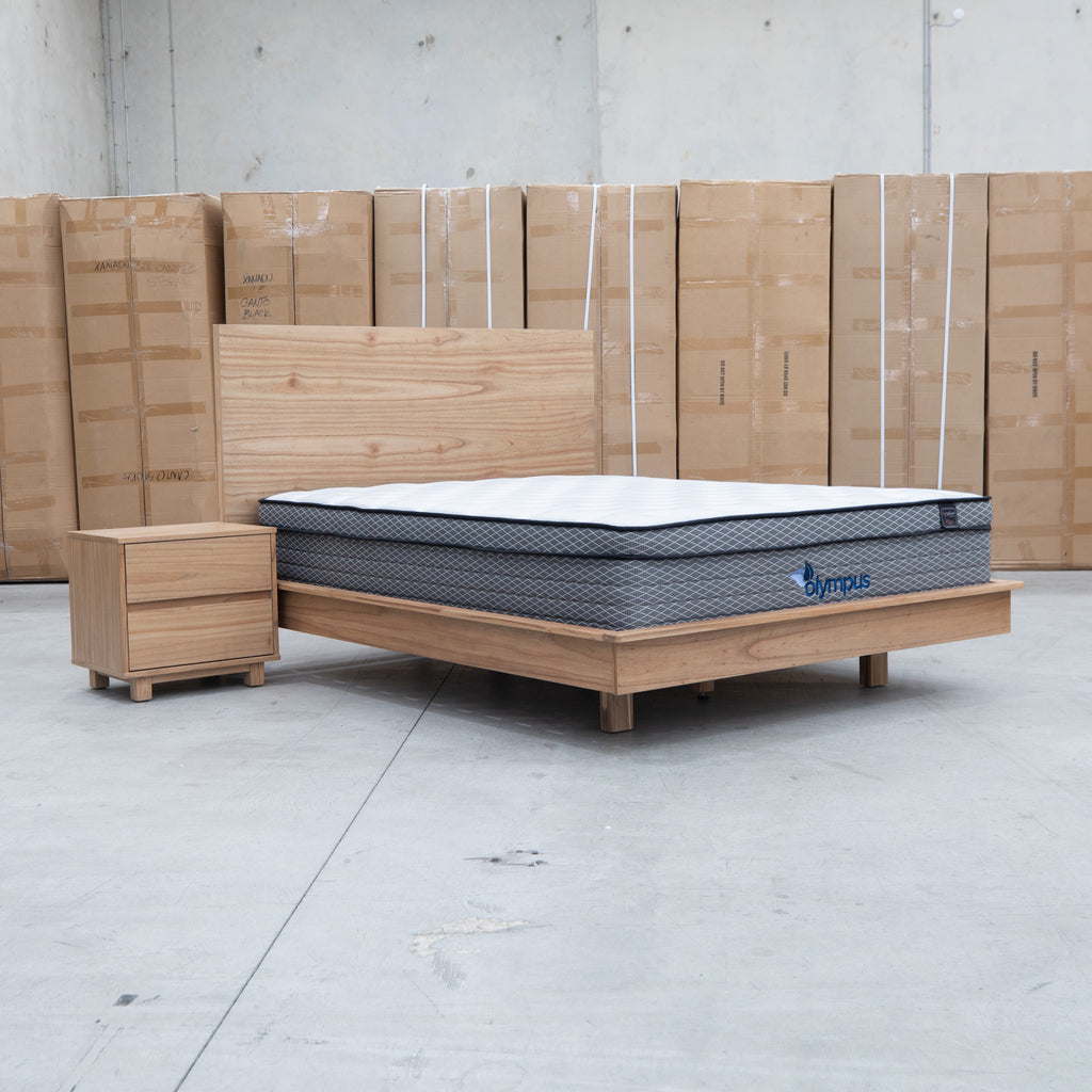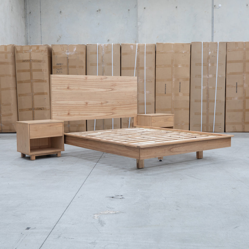 The Mandalay Floating Bedframe combines solid timber slats with a natural Mountain Ash finish, emphasizing both strength and the wood’s elegant grain. Its distinctive floating illusion design delivers a modern, minimalist aesthetic while ensuring durable support for a premium bedroom centerpiece.