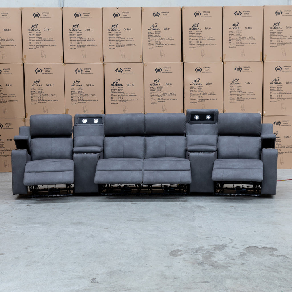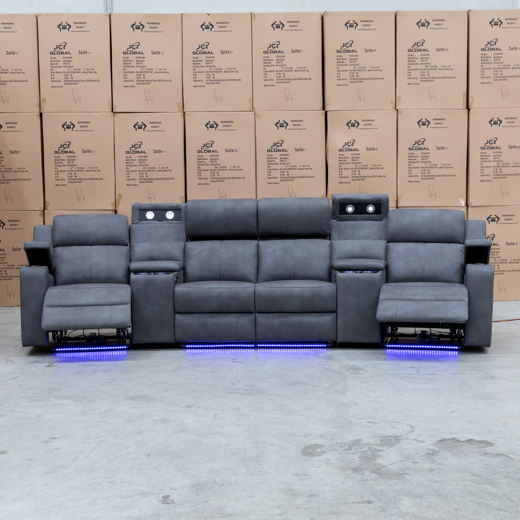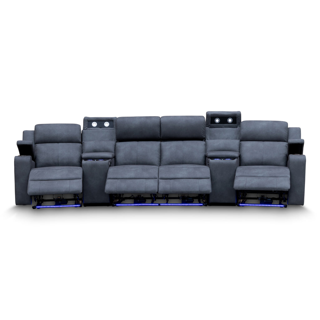 Xanadu 4 Recliner Dual Motor Electric Theatre Lounge - Light Grey Rhino Suede