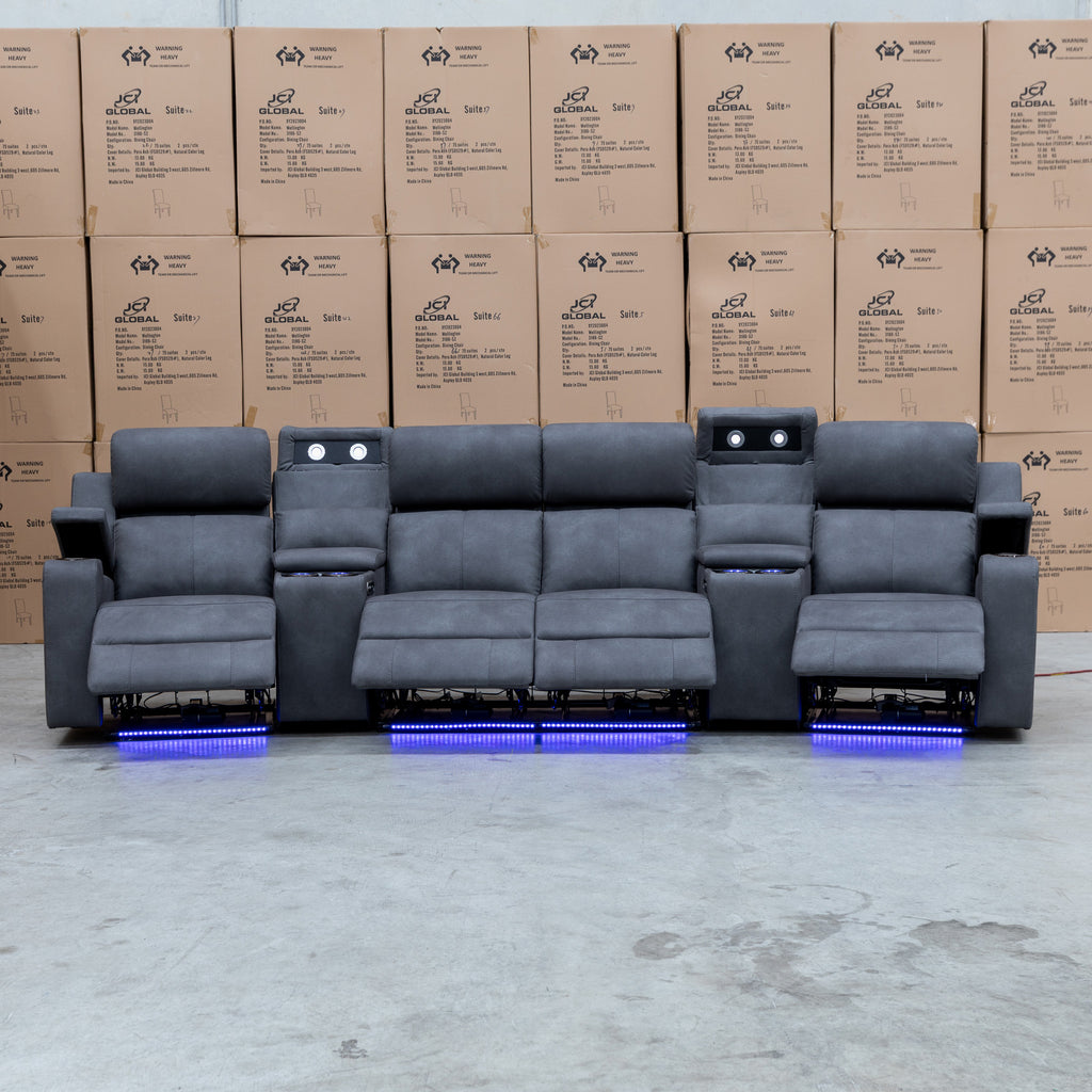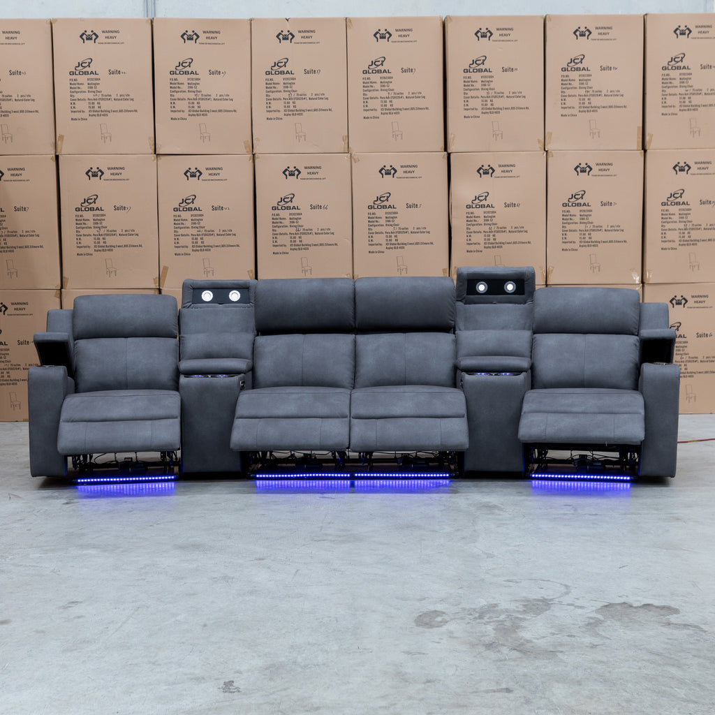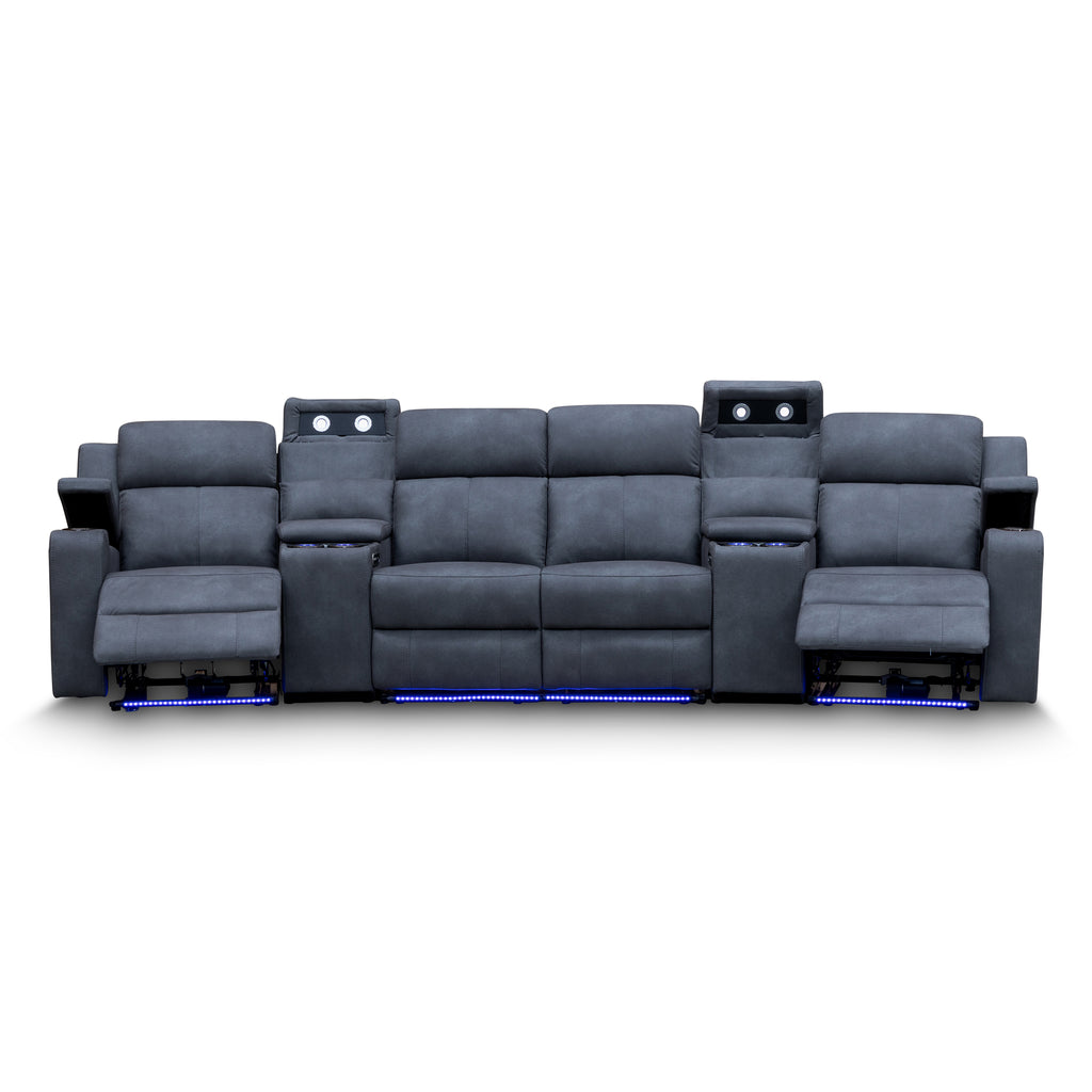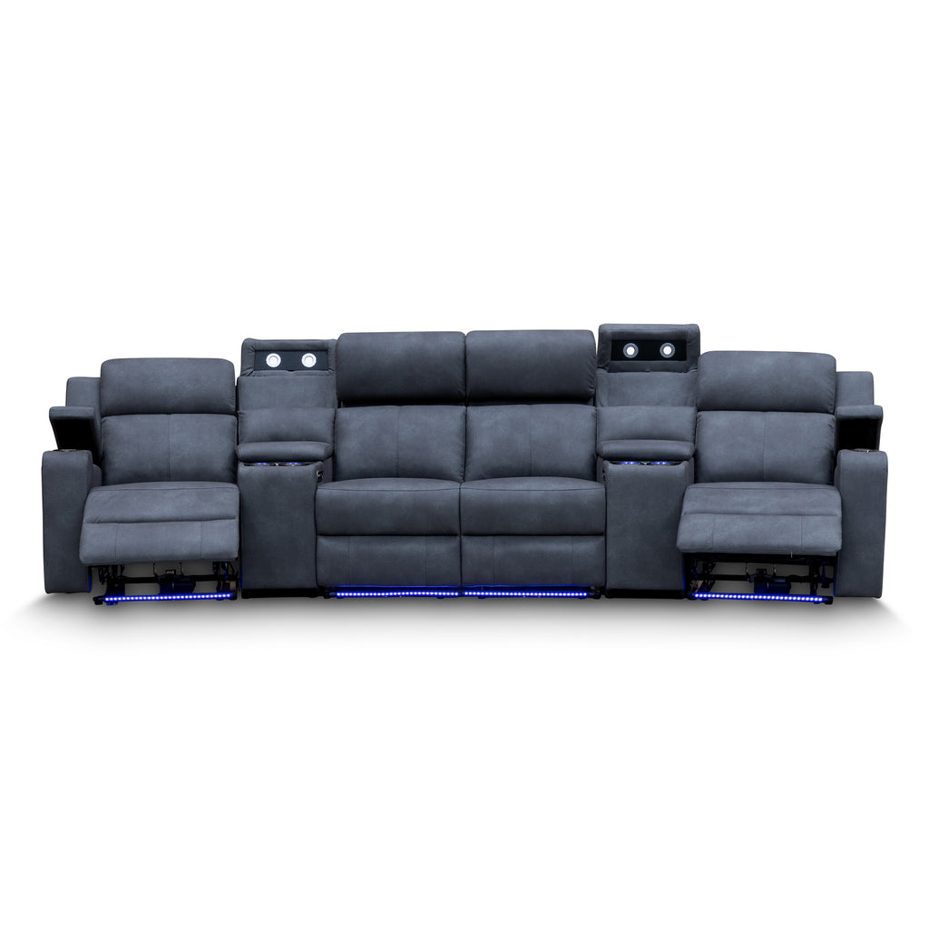 Xanadu 4 Recliner Dual Motor Electric Theatre Lounge - Light Grey Rhino Suede